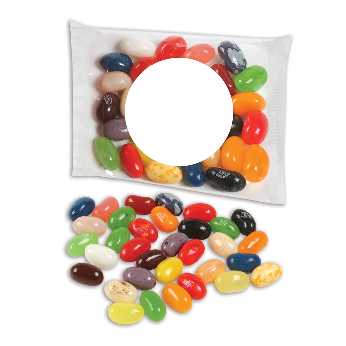 Now you can get the same delicious treats for your promotional needs that you are used to having in your gourmet food gifts. Everyone knows that the Jelly Belly® is the finest jelly bean made. This assortment is a combination of their most popular flavors. Complies with CPSIA, FDA, Prop 65. 5.25″ L x 3.25″ W